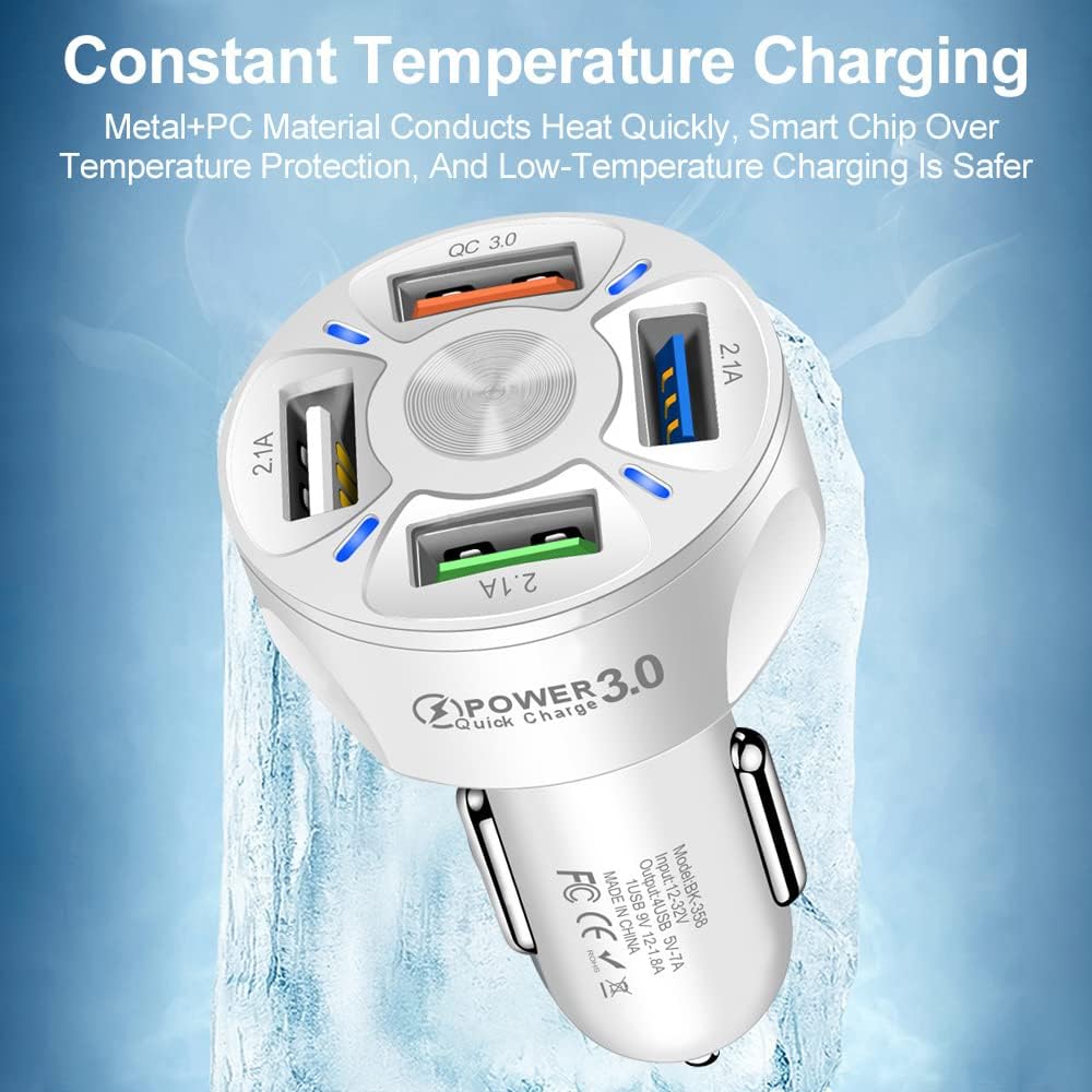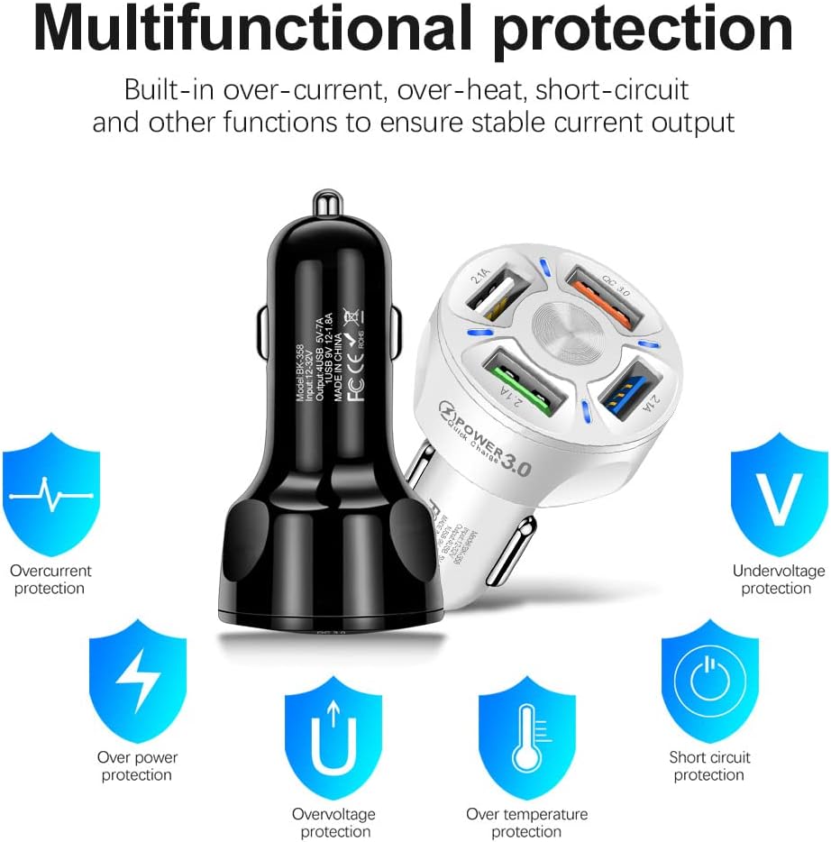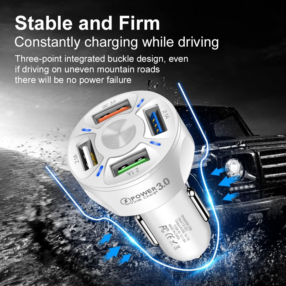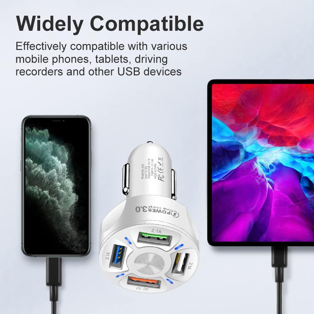 - Charge multiple devices at once with the 4-Port USB Car Charger