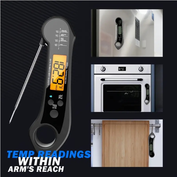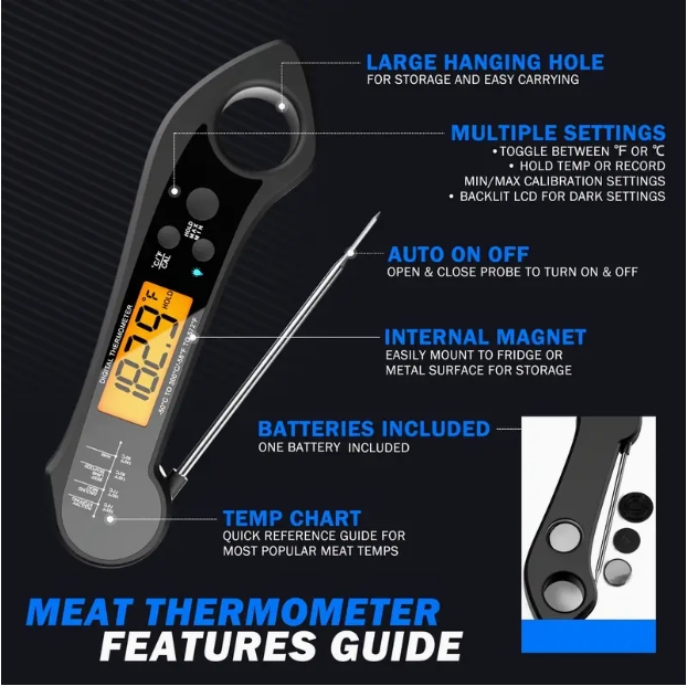 - Backlit Screen LED Display - The thermometer is designed to be illuminated so you can use it clearly in dark places. Easy to use and with detailed reference temperatures for food is a great gift option