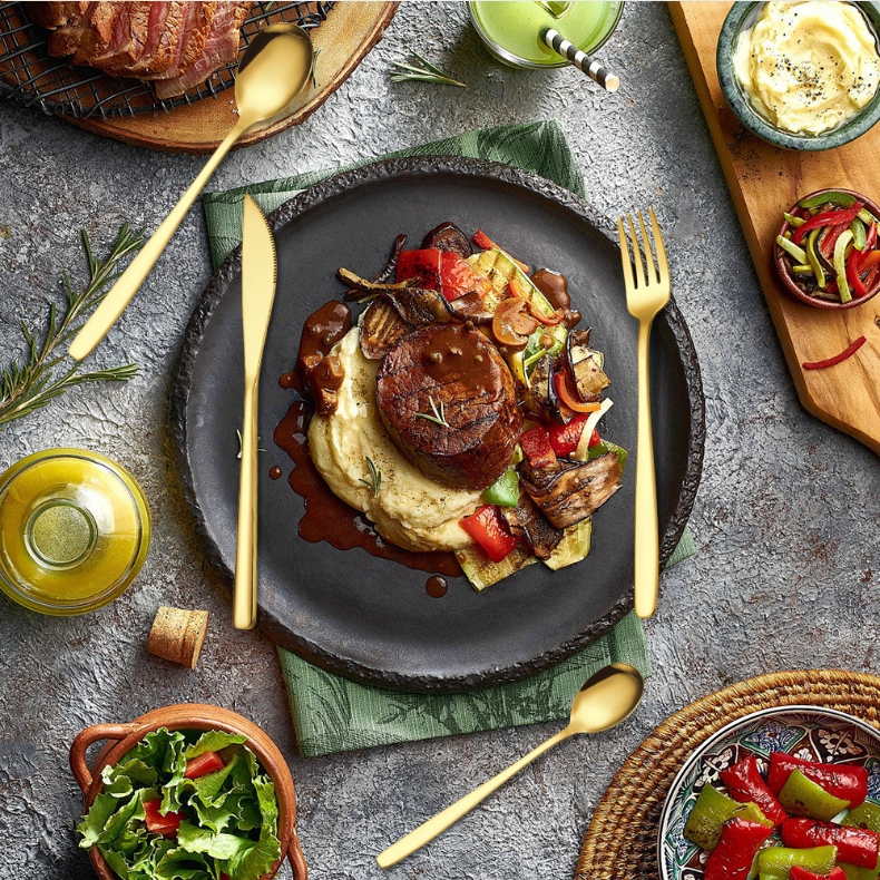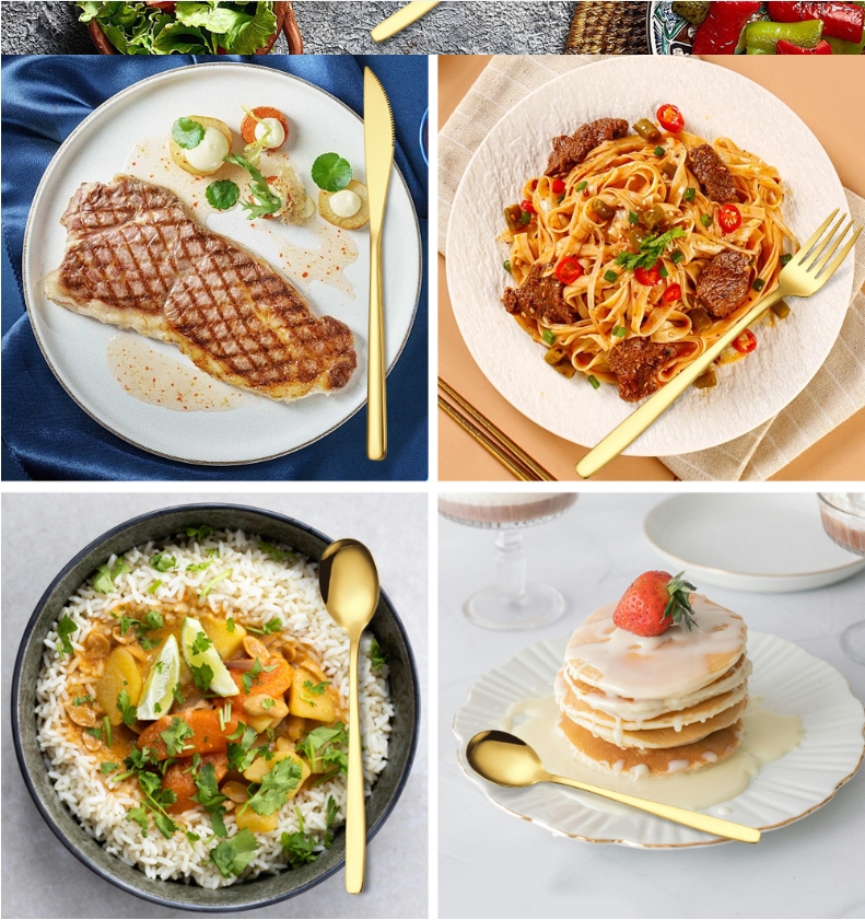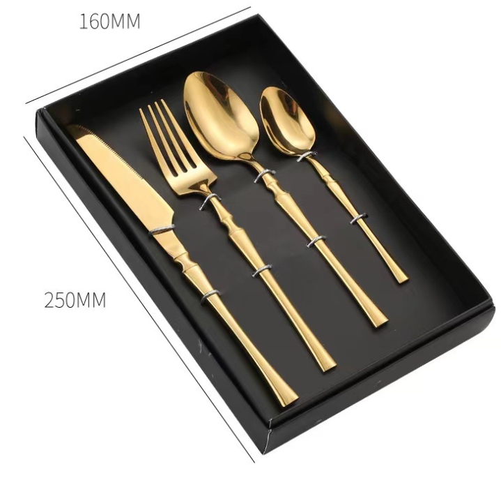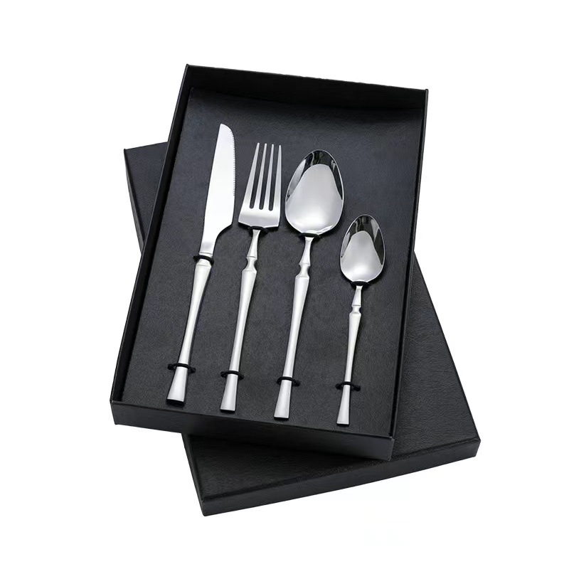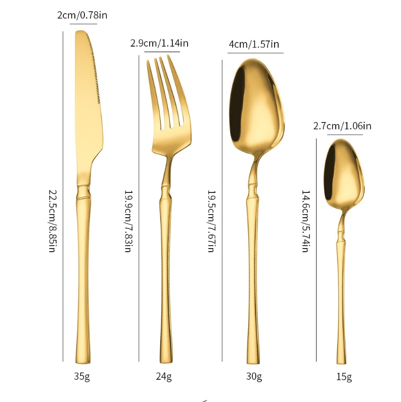 - 4-piece set includes four knives, forks, tablespoons and teaspoons