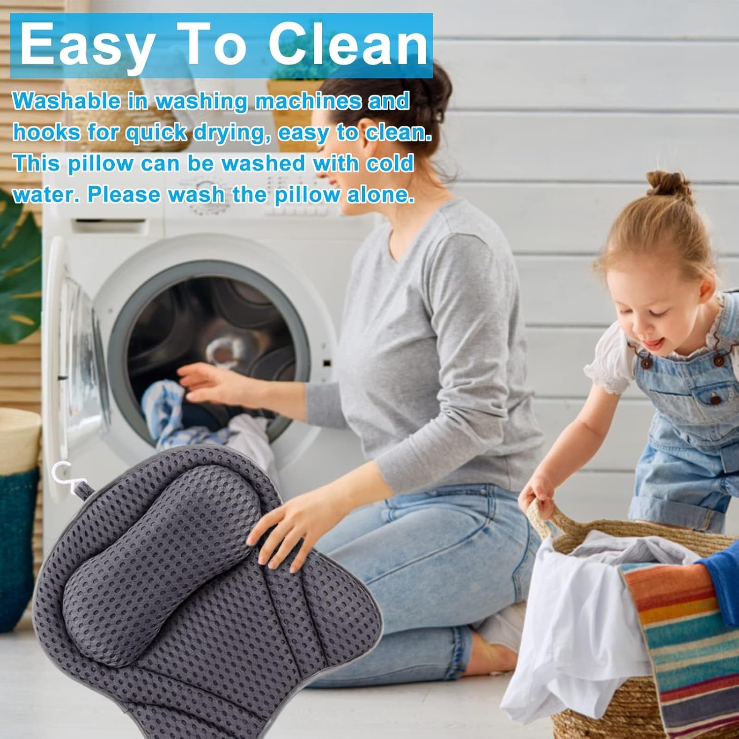 4D MESH BATH PILLOW: Our bath pillows for tub are made with unique 4D air meshs technology, which is easy to clean, air and moisture permeable and dries very quickly, preventing unpleasant odors, mold, or bacterias infestation.