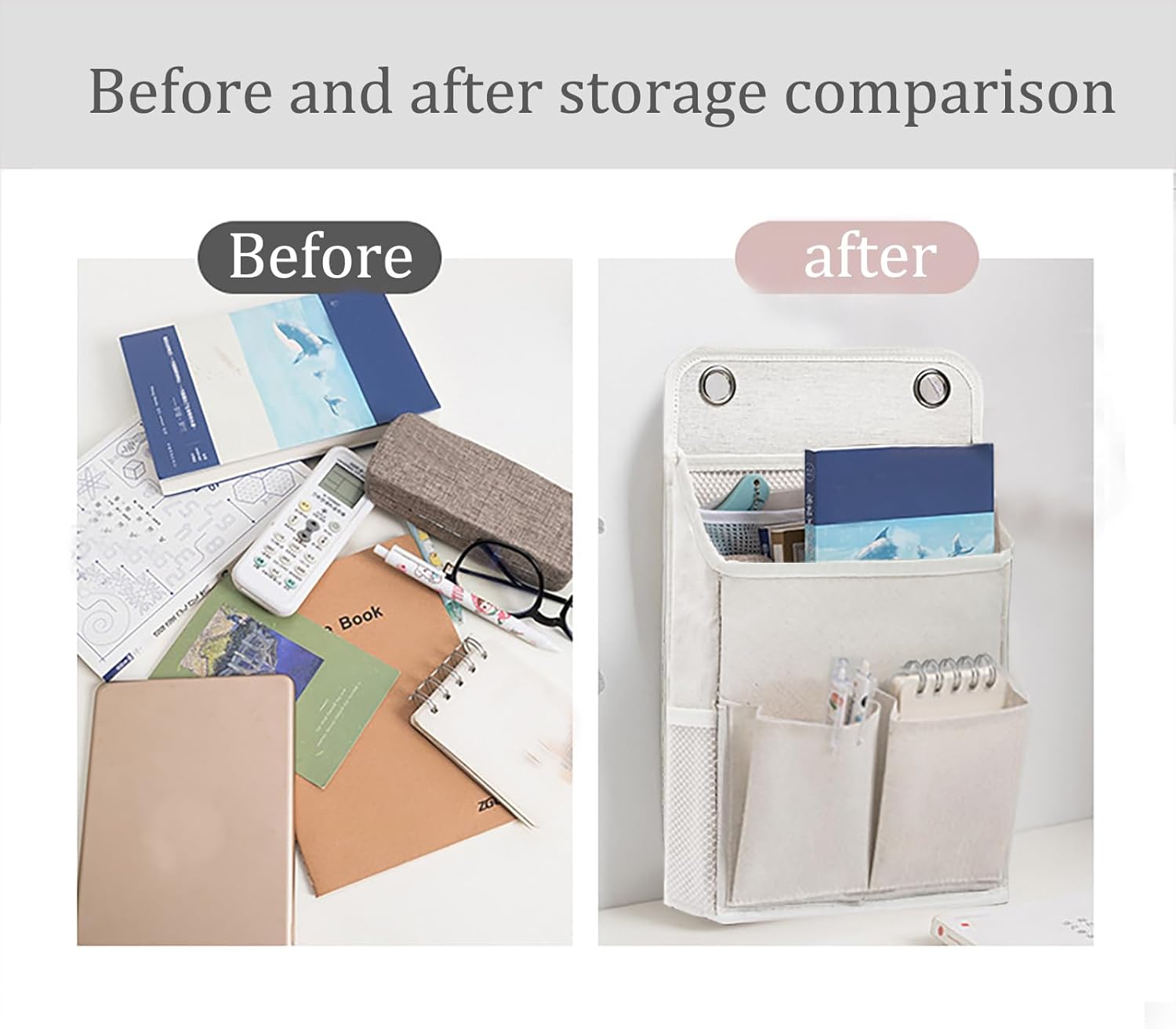 - 【Clear-View Mesh Pocket + 5 Compartments】Large breathable visual mesh pocket, magazines / books / stationery at a glance as you go, with 5 different sizes and styles of classification pockets, wall hanging storage doubles the utilization of space.