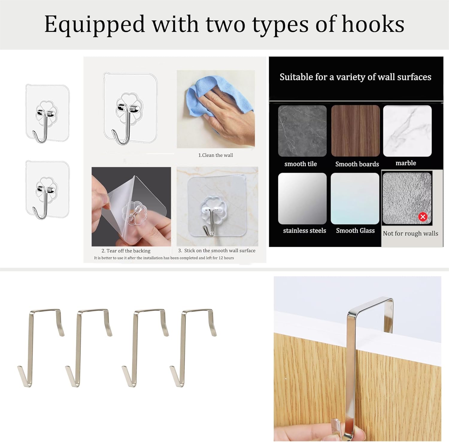 - 【Two kinds of hooks available】Thoughtfully equipped with two choices of hooks + sticky hooks behind the door, bedroom / closet / office / dormitory hanging at will, free of holes to install, switch the scene as you wish, do not hurt the wall that is hung and used.