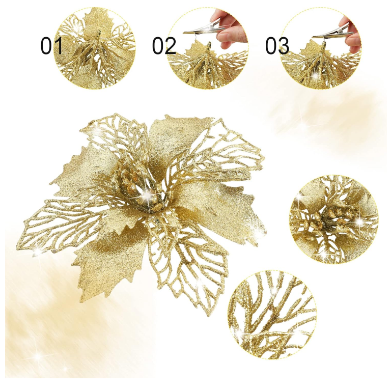 Easy to Assemble: Each artificial flower is about 15cm/5.9 inch. The set comes with the clips, you can easily attach them to Christmas tree, Christmas wreath or garlands and help to add festive appeal in an instant.