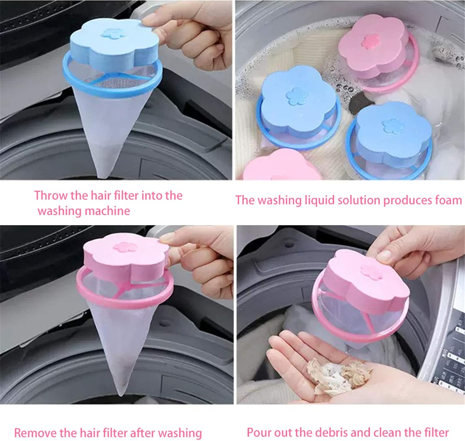 4/8 Pieces Lint Catcher for Washing Machine Lint Trap Floating Hair Fur Catcher Laundry Reusable Hair Filter Lint Mesh Bag