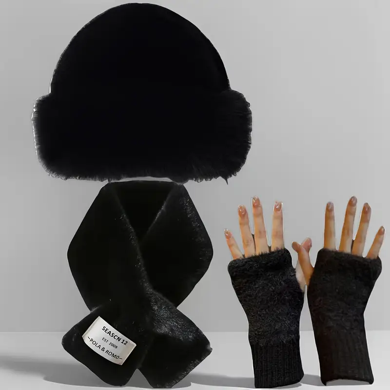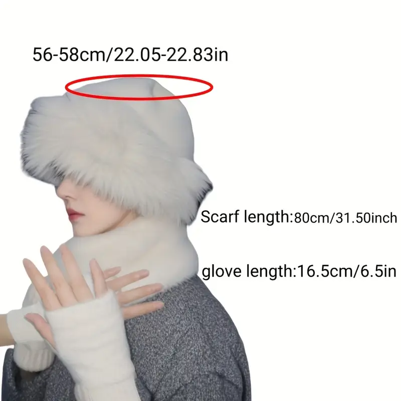 Size: Hat: 56-58cm; Scarf Length: 80cm ; Glove Length:16.5cm