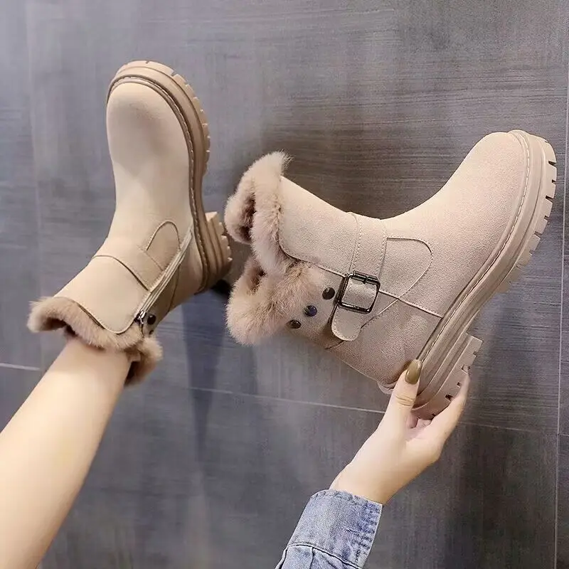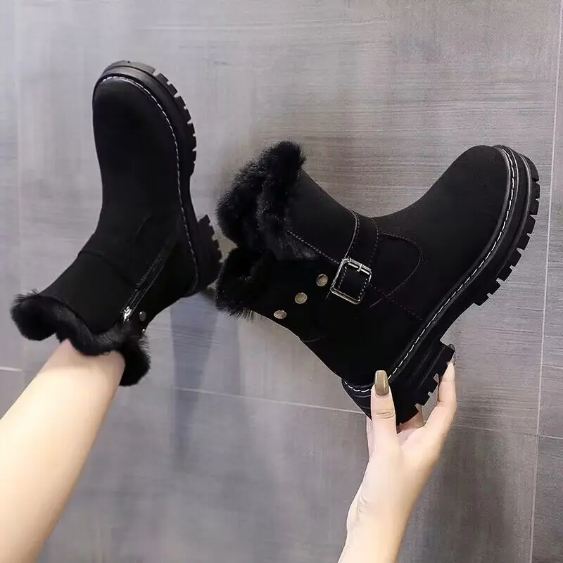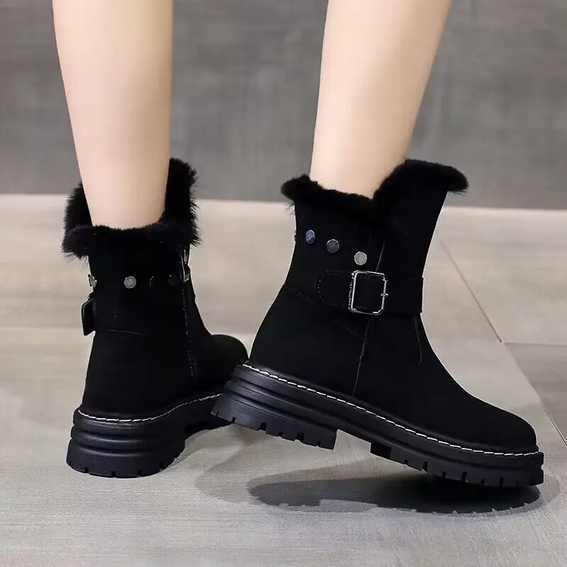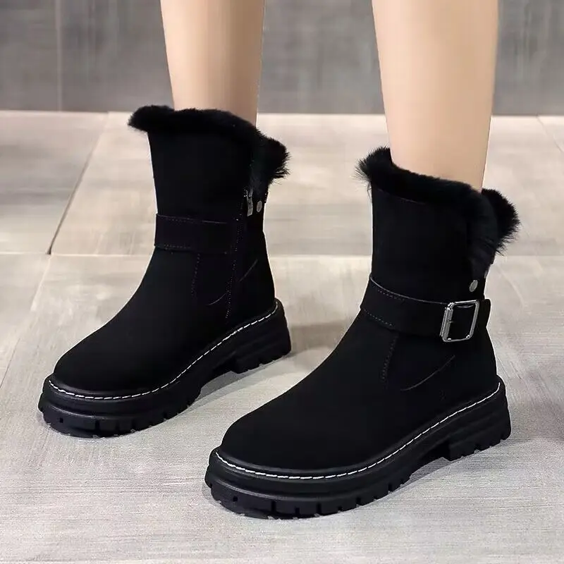 The lining and insole of the winter boots are made of fluffy and warm artificial fur and plush collar,which not only can wrap your feet well in cold weather,keeping them warm and comfortable,but also won't lose the sense of fashion.