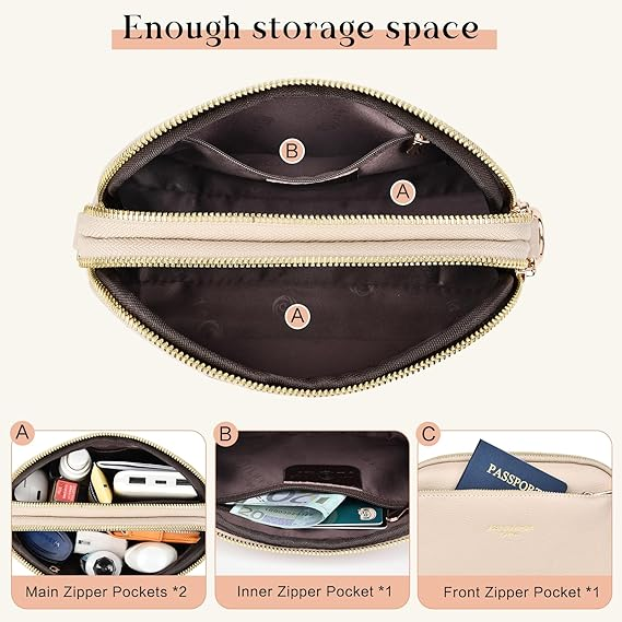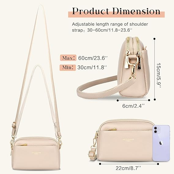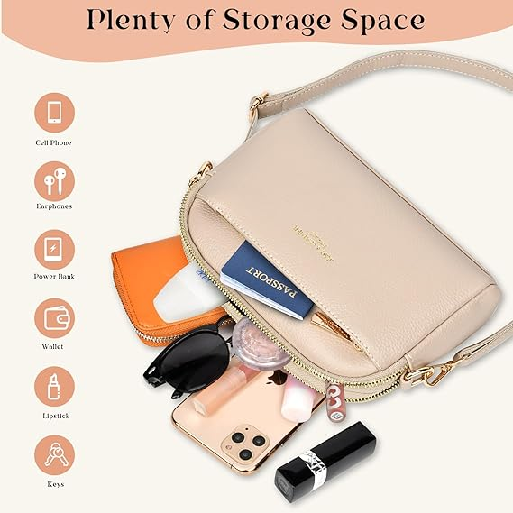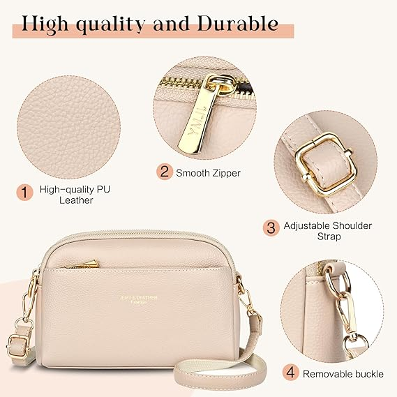 【Premium Material】- crossbody bag for women is made from high quality PU leather and fabric lining, this crossbody bag is beautifully lightweight and odorless, soft to touch and durable. Equipped with high quality smooth metal zippers for easy opening and closing, it not only allows you to quickly access your essentials, but also maximize the protection of your valuables.
