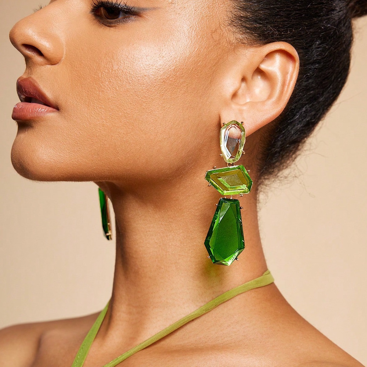 Packaging includes: 2 pairs earrings(green+contrast color)