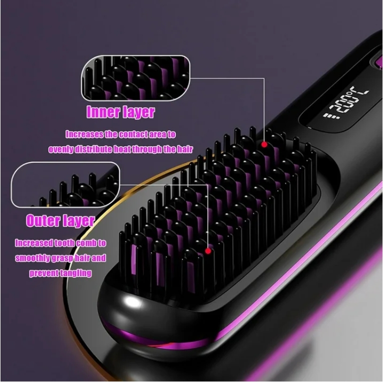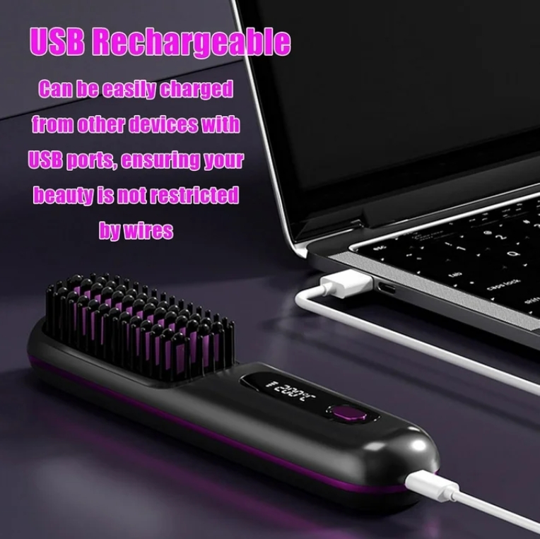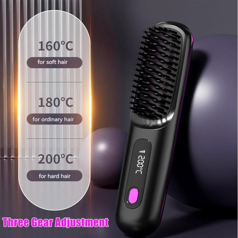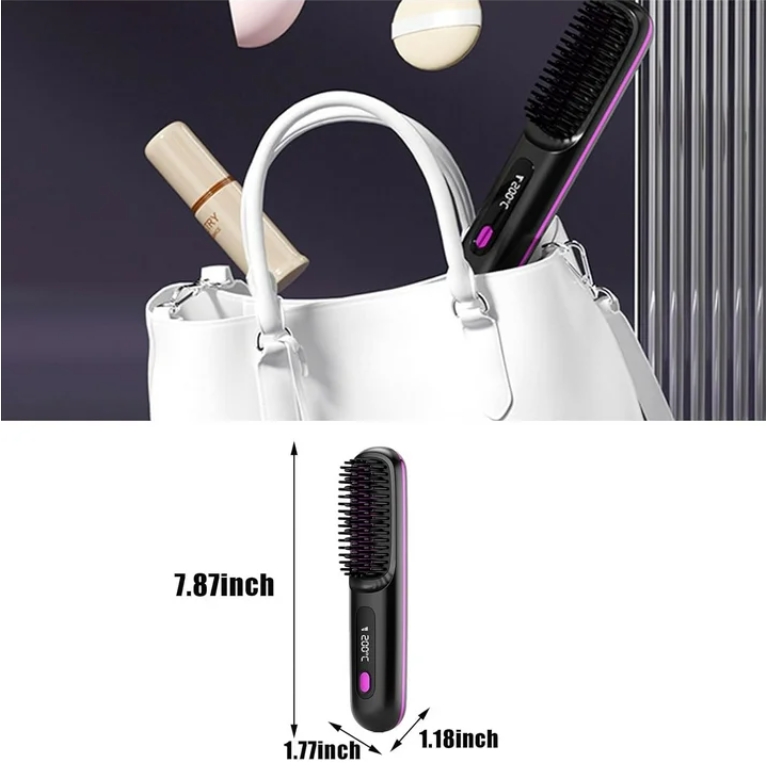 [Portable Straightener Brush] : Gobrush Pro: Designed for effortless styling on-the-go, the Numoya Go Brush Pro offers cordless convenience, allowing you to straighten your hair anywhere without the hassle of tangled wires. This makes it an ideal companion for travel and daily touch-ups