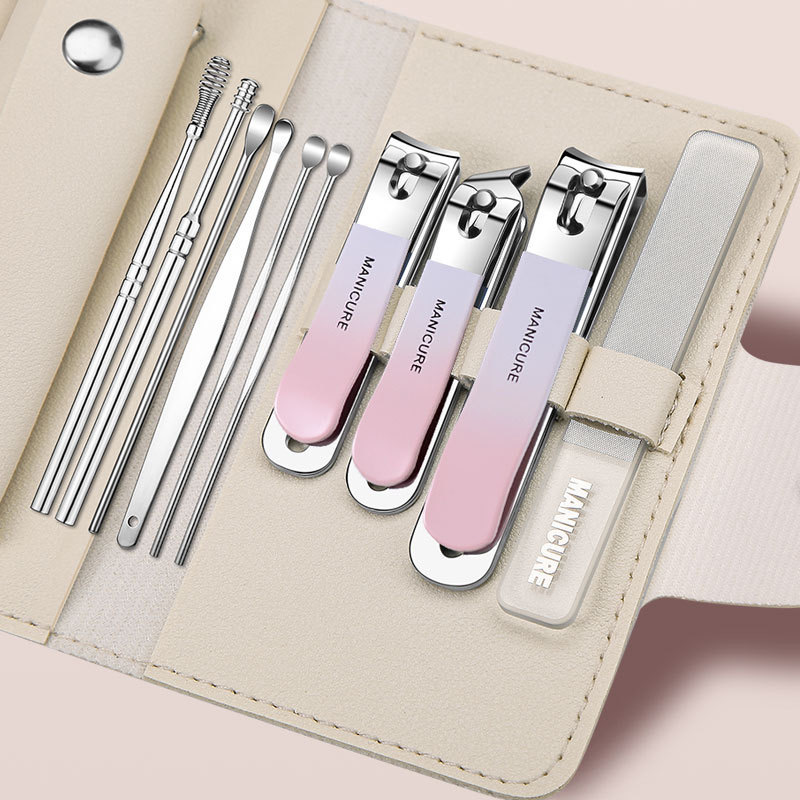 [10-piece value set] Contains a single nail clipper, nail pliers, dead skin pusher, nail grinding stick, tweezers, etc., to meet the full process needs of trimming, grinding, and dead skin removal.