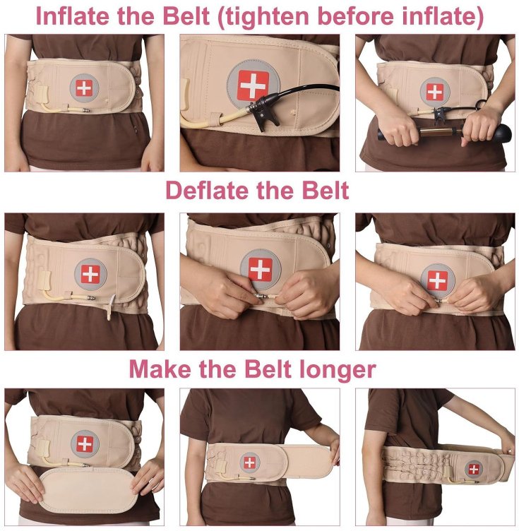 [Automatic Deflation Function] : Automatic deflation when it is inflated to the max,don't burst the belt when you pumping gas too much.And lumbar support belt design inner strip protection,anti-slip and belt reinforcement,also have 18 air vents,breathable keeps air circulating