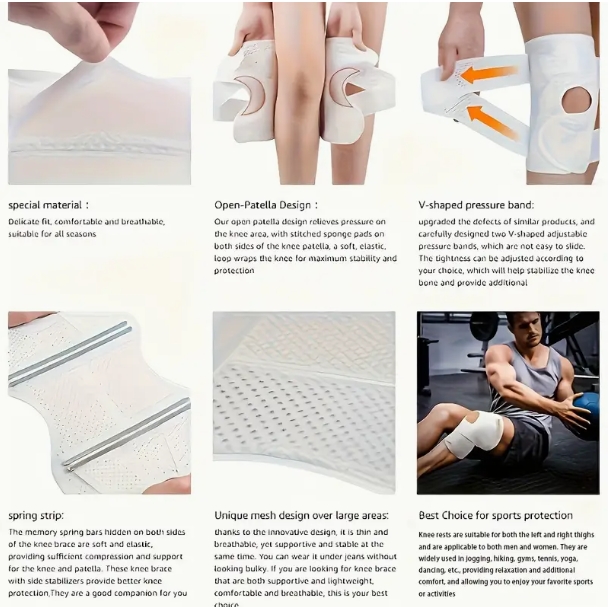 - 【Bimetal Spring Stabilizers】The 4 Memory spring stabilizers on both sides will provide stability and protection for weak and Injured Knees, which can Support the Joint and significantly reduce the burden on the kneecap, effectively relieving knee pain, Meniscus tears, ACL, MCL, arthritis, sprains, strains, sports injury recovery and so on, It's the BEST CHOICE for sports protection and pain recovery.
