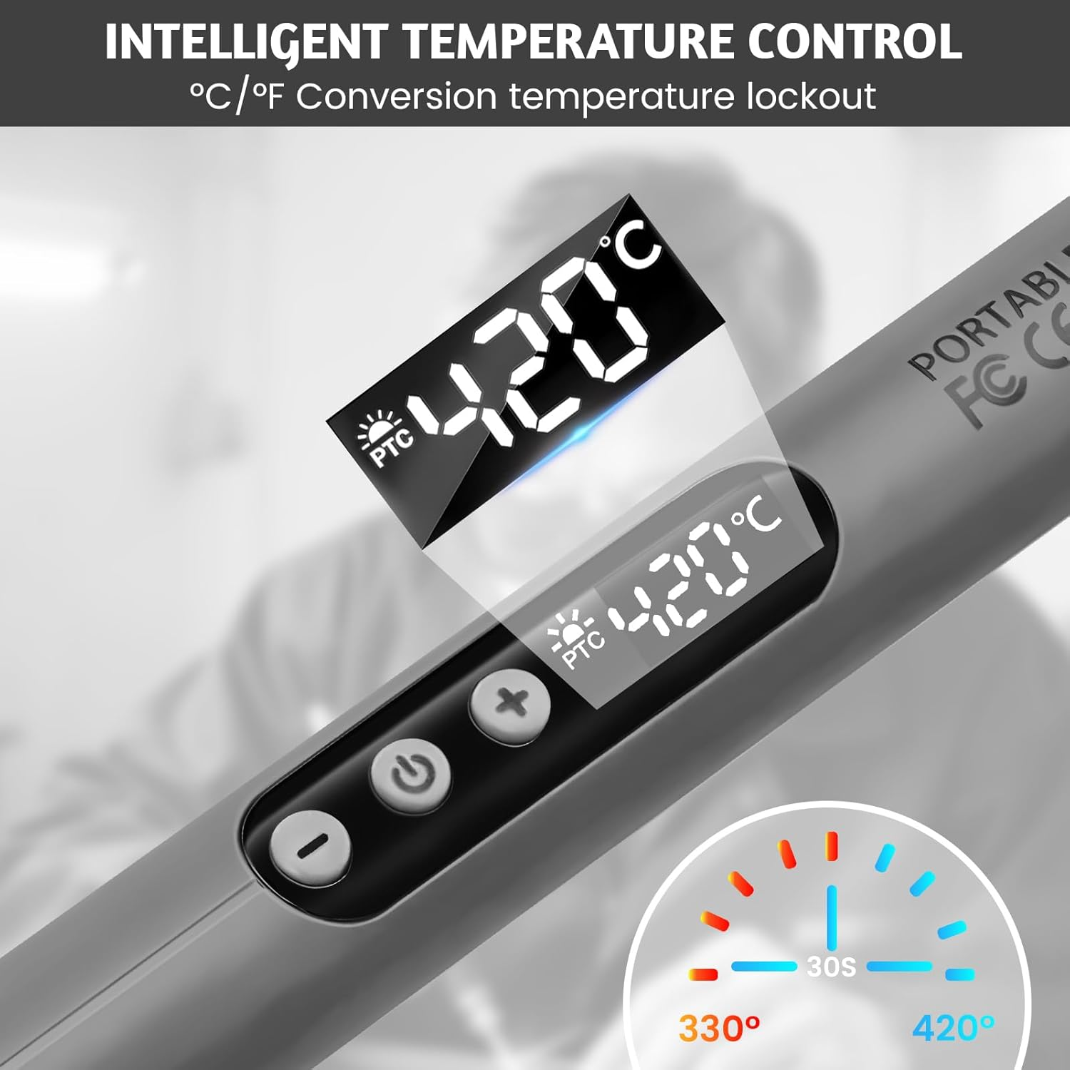 Three gears of intelligent temperature adjustment, with LED display design, adjustable temperature 260-420℃, can be converted between Celsius and Fahrenheit degrees