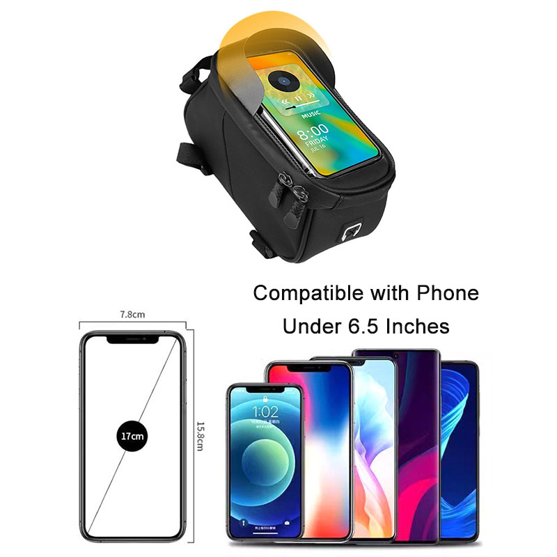 - [Touch Screen Design] The bike phone mount bag's surface is made of TPU sensitive touchscreen,so you can easily operate your phone while riding.