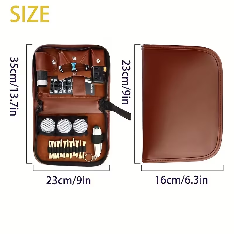 Easy to carry: The right golf accessories are integrated into a beautiful brown hi-end leather handbag, the comfortable carry handle is more convenient for you to carry, yet it can show your unique taste in appearance and material, and also improve the performance