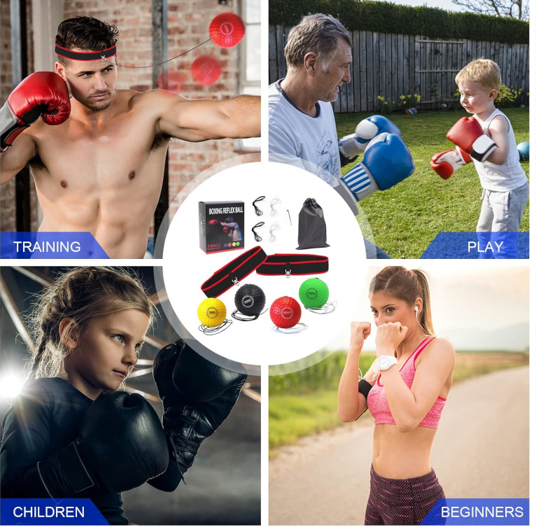 TWO PLAYERS: 2 headbands + 2 novice reflex balls enable 2 family members to learn and play together and trying their best to compete by counting more consecutive punches