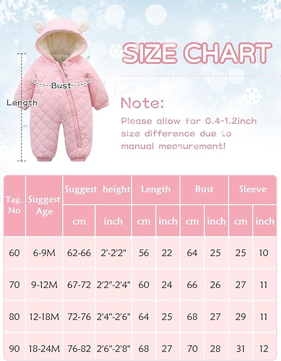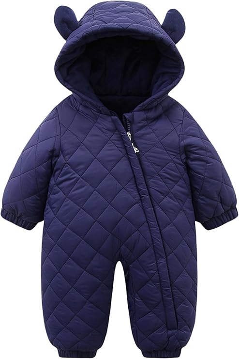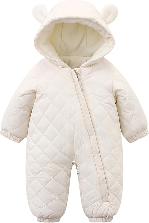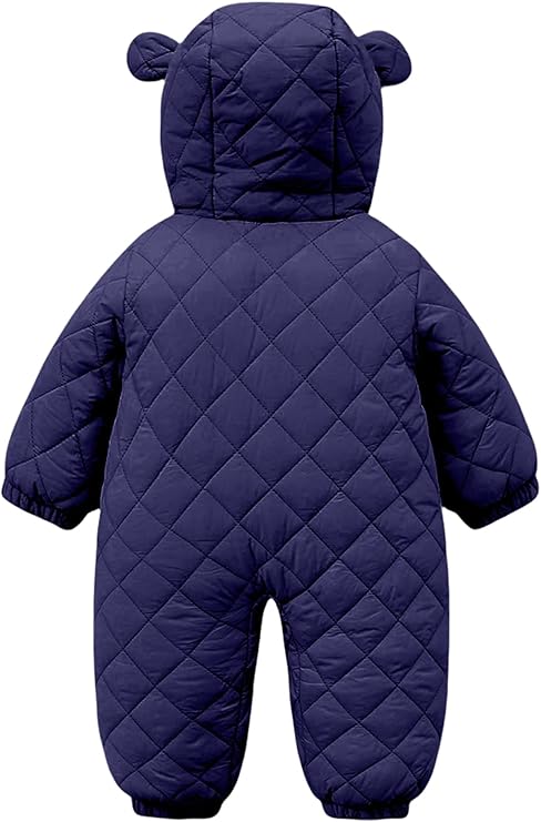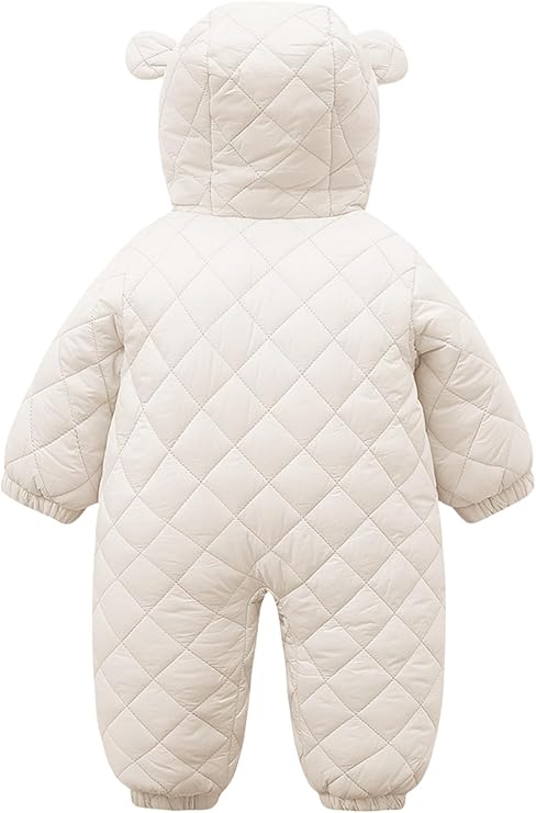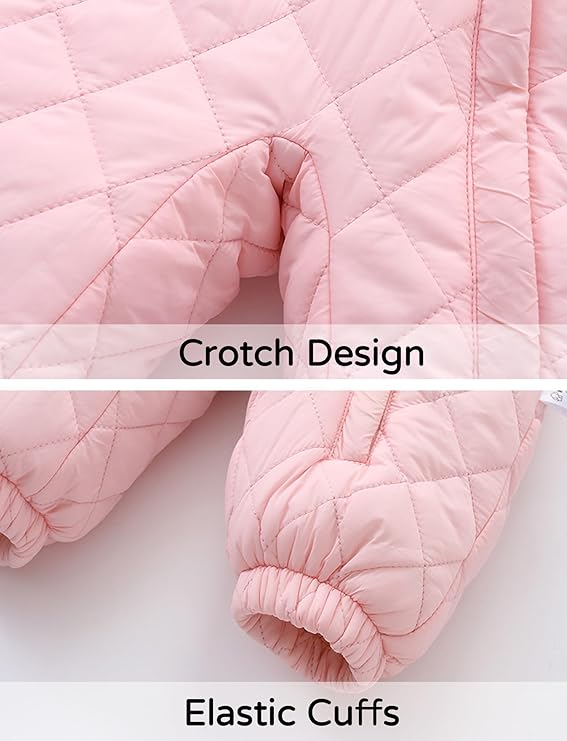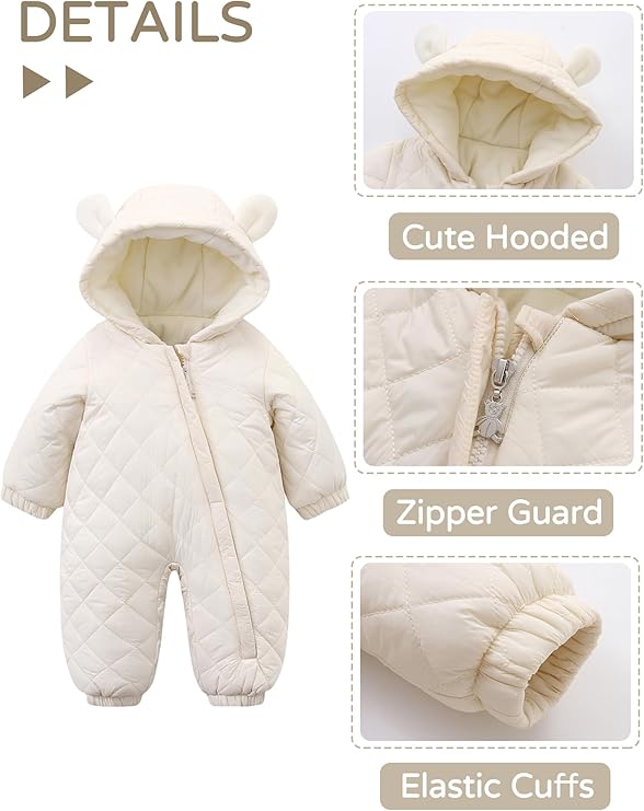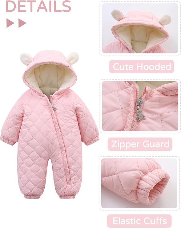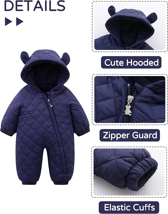 Charming Cartoon Ear Design: Decorated with cute cartoon ears on the hood, this jumpsuits gives your baby a particularly cute look. The non-removable hood provides full protection for the head and keeps cold winds while ensuring a secure fit.
