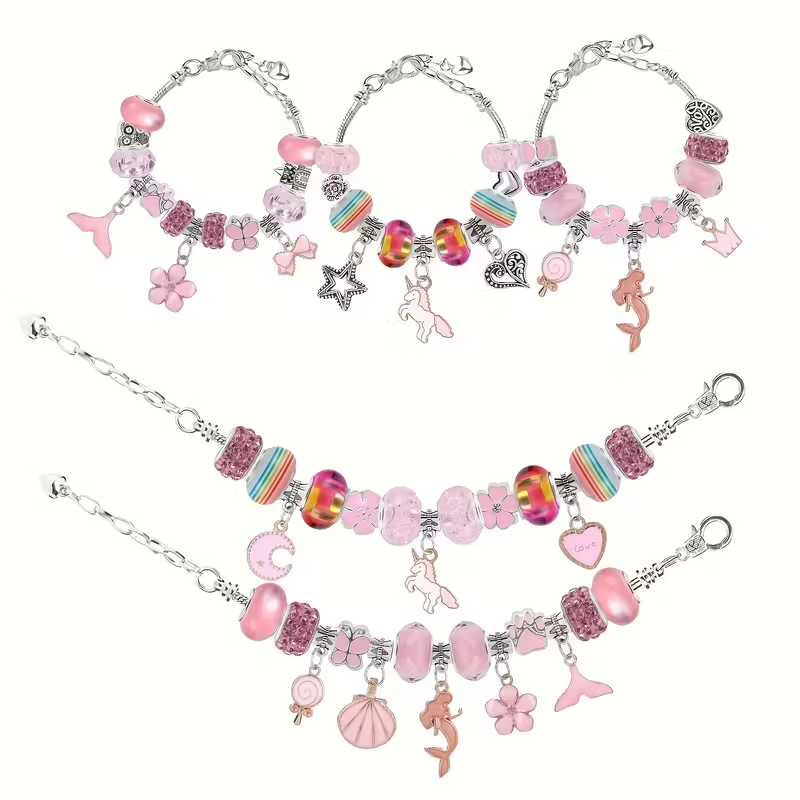 Jewellery craft set bracelets: the pink jewellery set includes a variety of styles. Children will be amazed that the pendants contain a variety of cute elements that girls love